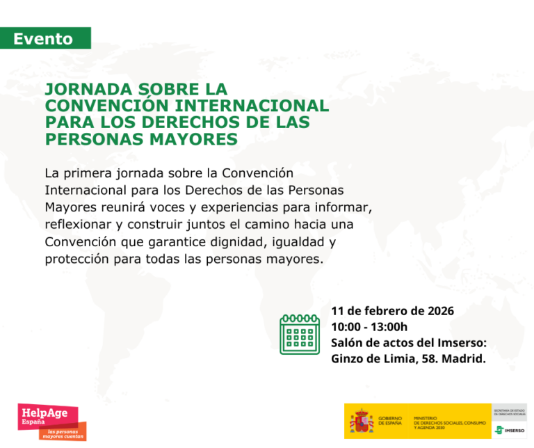 Te invitamos al evento: “Protección y Promoción de los Derechos Humanos de las Personas Mayores: Un análisis del marco normativo e institucional nacional e internacional" organizado por la Fundación HelpAge International España y gracias a la financiación de la Oficina de Derechos Humanos del Ministerio de Asuntos Exteriores.
